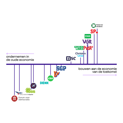 Met de verkiezingen in aantocht analyseerde MVO Nederland in hoeverre politieke partijen concrete plannen hebben voor die economie van de toekomst. Dit gebeurde op drie thema’s: nieuwe verdienvermogens, biodiversiteit en circulair ondernemen. Uit de analyse blijkt dat minstens zeven van de vijftien partijen duidelijk kiezen voor een economie die klaar is voor de toekomst.